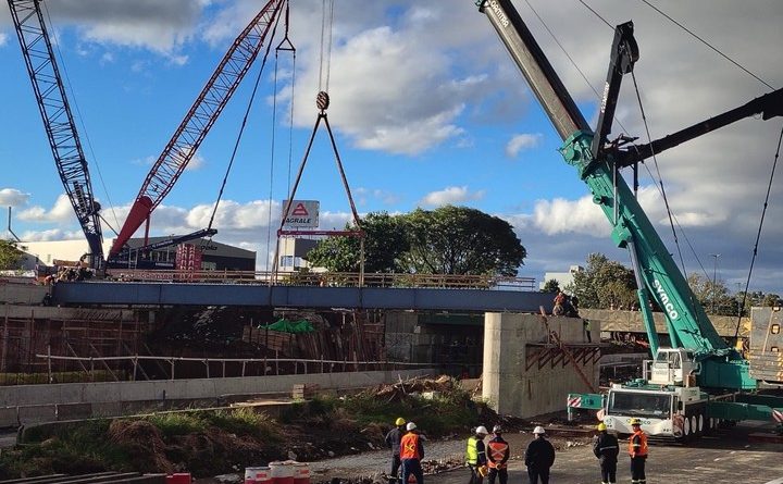 Armaron un puente de miles de toneladas sobre la autopista Dellepiane